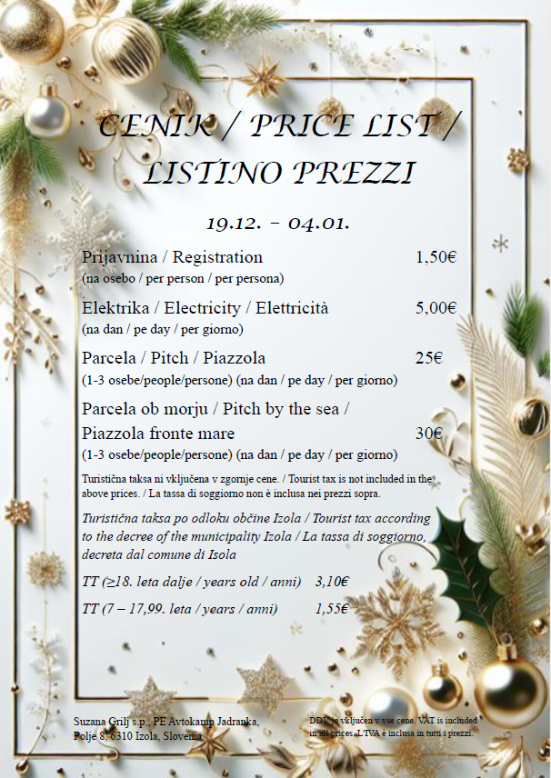 The price of “camper/night (pitch)” includes 1-2 people. Each additional person is paid according to the valid price list for overnight stays per person.